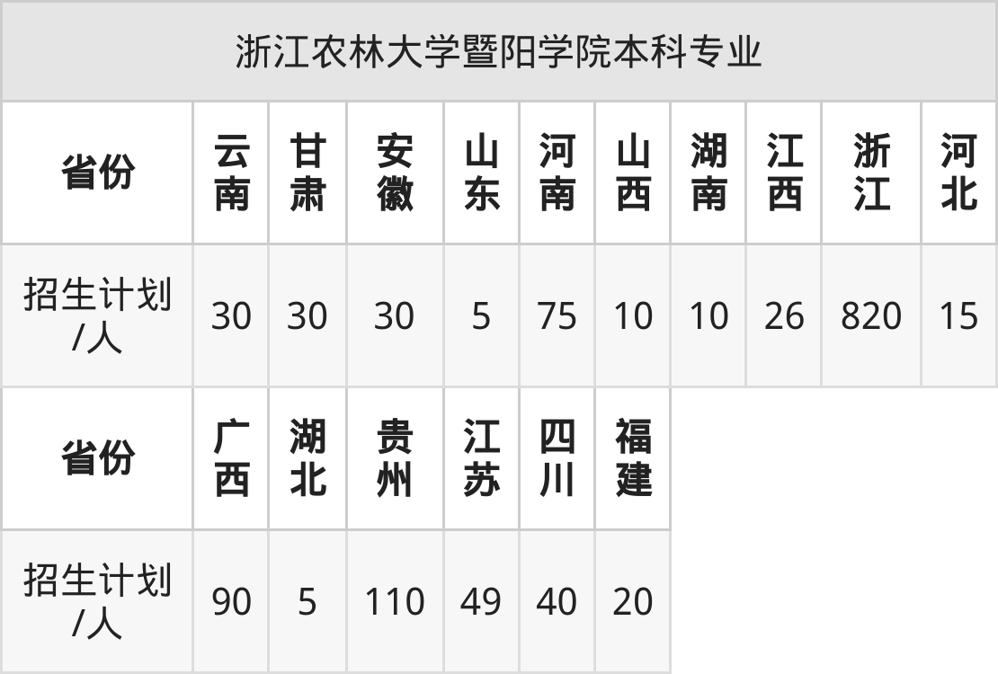 | 浙江农林大学暨阳学院本科招生专业 | |