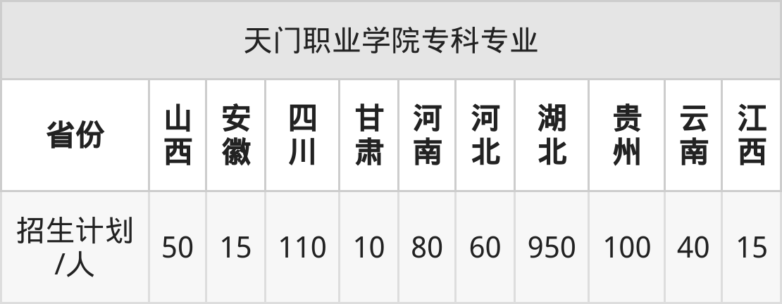 | 天门职业学院专科招生专业 | |