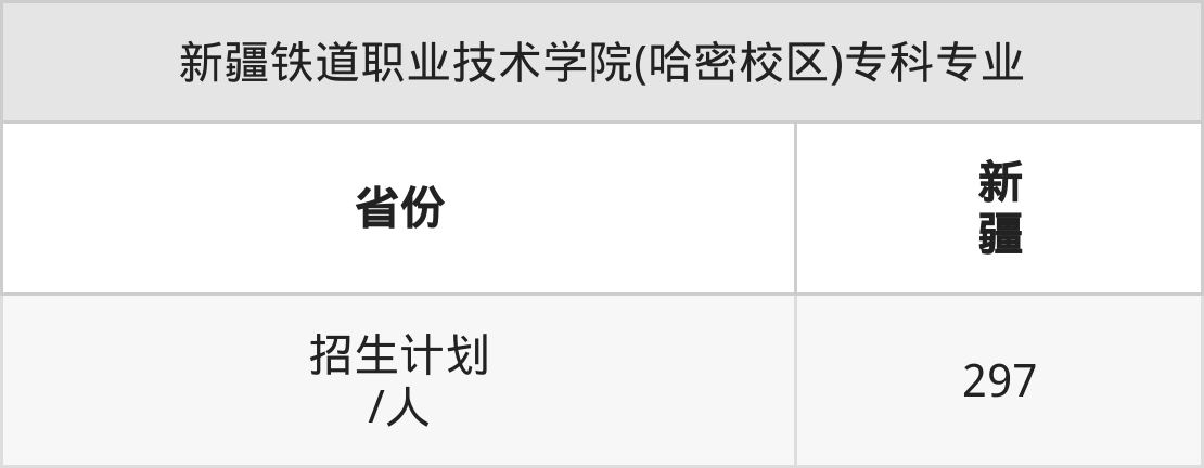 新疆铁道职业技术学院(哈密校区)面向新疆(297人)开展专科招生。招生批次为专科批。