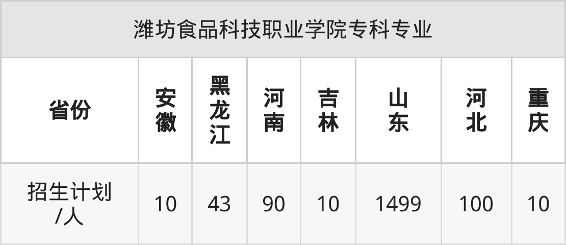 潍坊食品科技职业学院面向浙江(110人)开展本科招生。