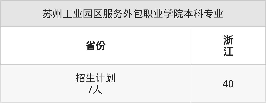 苏州工业园区服务外包职业学院面向浙江(40人)开展本科招生。