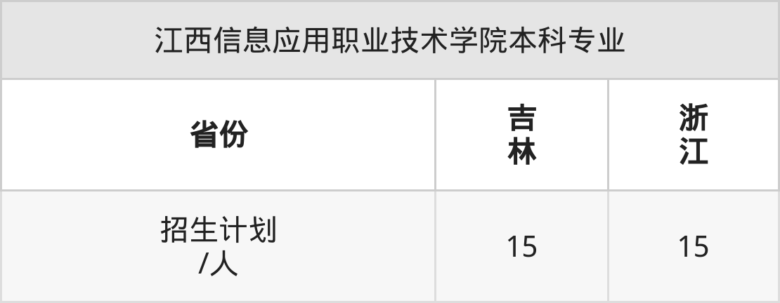 江西信息应用职业技术学院面向吉林(15人)、浙江(15人)开展本科招生。