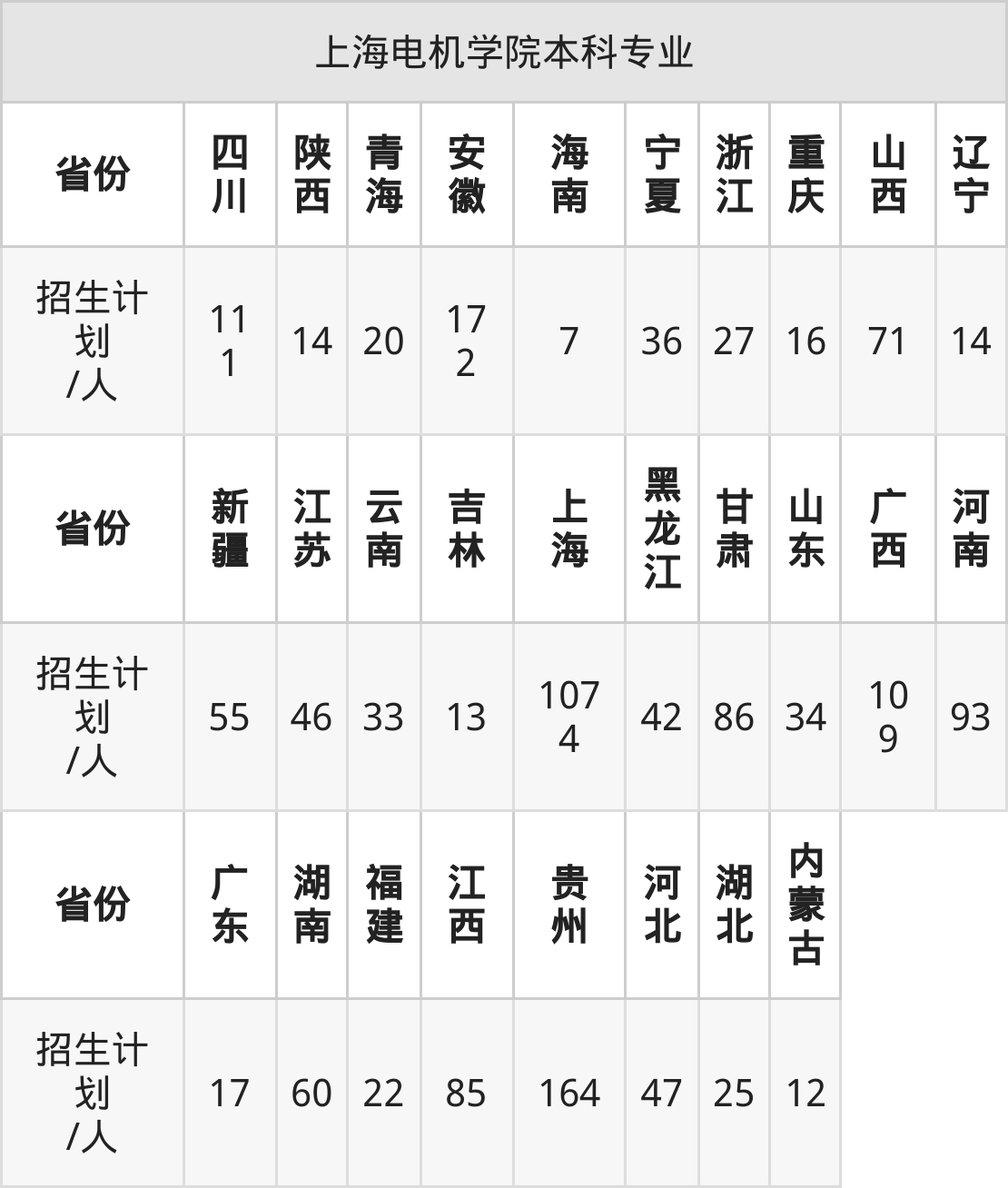 篇幅有限,大家可直接在下表查询本科招生省份及招生计划数: