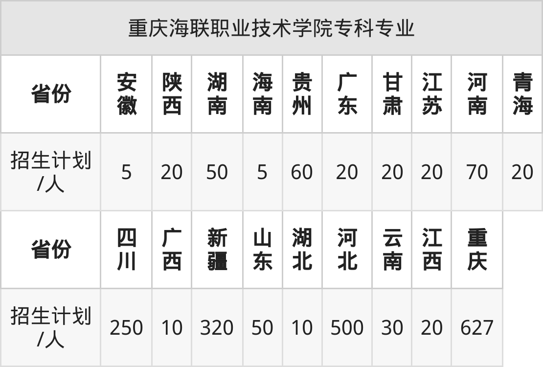 重庆海联职业技术学院面向浙江(20人)开展本科招生。