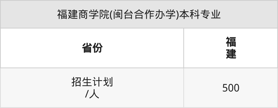 福建商学院(闽台合作办学)面向福建(500人)开展本科招生。招生批次为本科批。