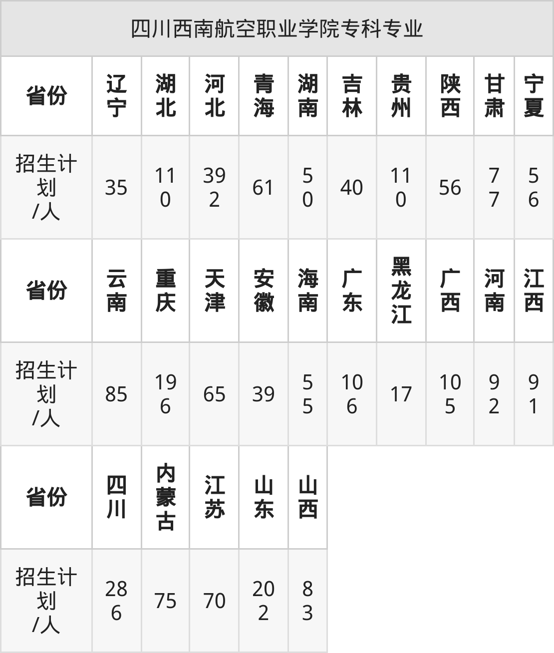 四川西南航空职业学院面向浙江(76人)开展本科招生。