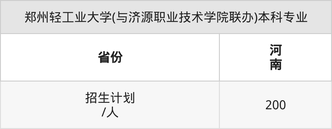 郑州轻工业大学(与济源职业技术学院联办)面向河南(200人)开展本科招生。招生批次为本科二批。