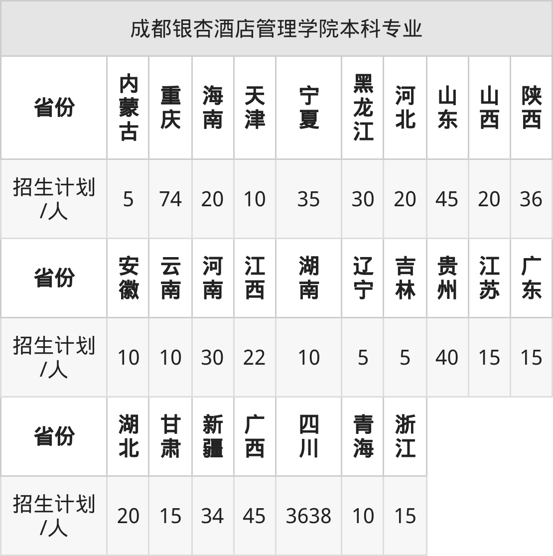 本文将详细介绍成都银杏酒店管理学院最新招生计划、招生省份以及选科要求等信息。