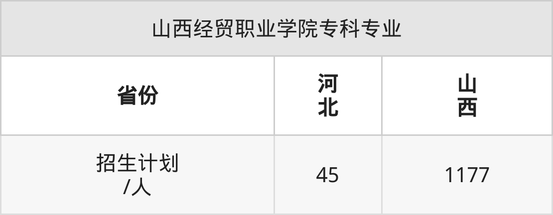 山西经贸职业学院面向河北(45人)、山西(1177人)开展专科招生。招生批次为专科批。