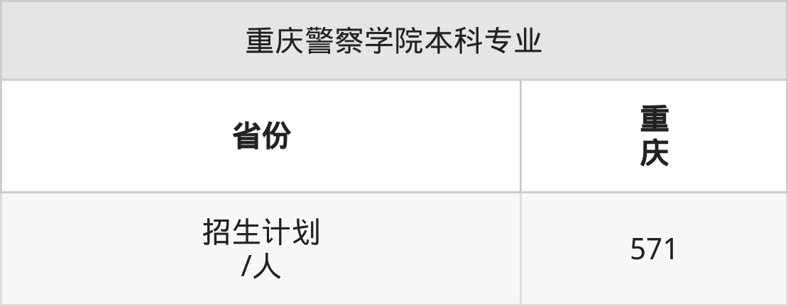 重庆警察学院面向重庆(571人)开展本科招生。招生批次为本科提前批A。