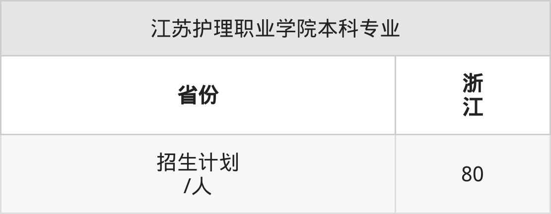 江苏护理职业学院面向浙江(80人)开展本科招生。