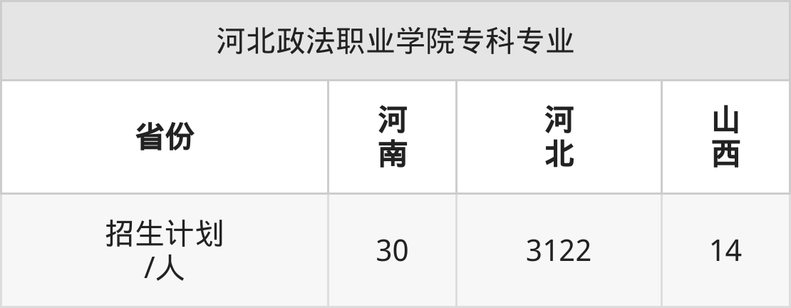 河北政法职业学院面向河南(30人)、河北(3122人)、山西(14人)开展专科招生。招生批次为专科批。