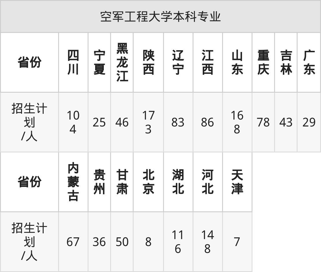 本文将详细介绍空军工程大学最新招生计划、招生省份以及选科要求等信息。