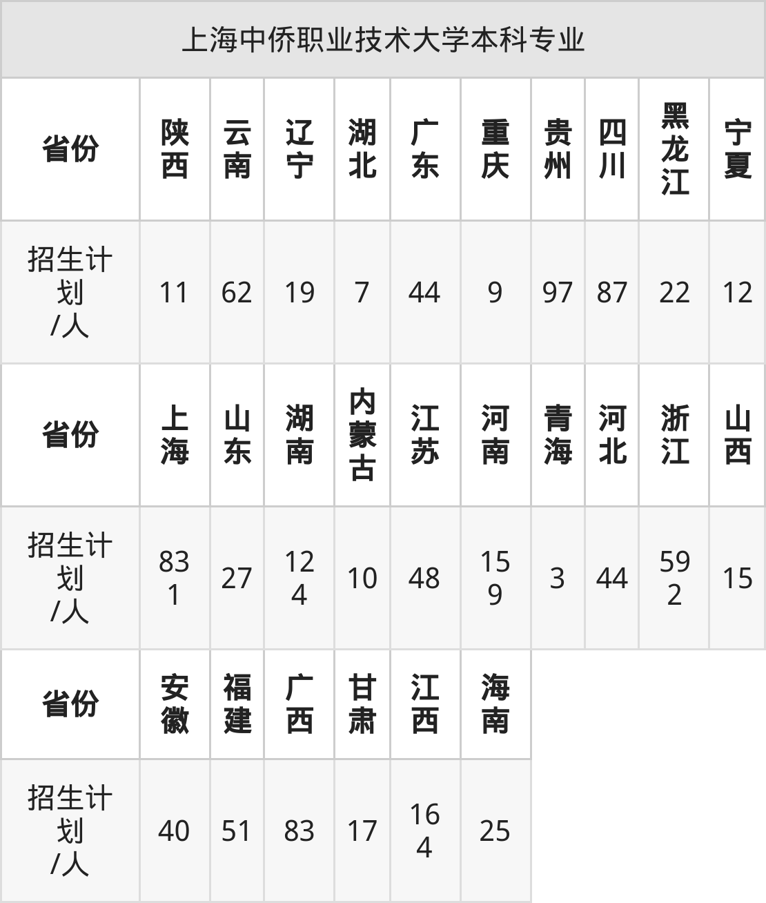 本文将详细介绍上海中侨职业技术大学最新招生计划、招生省份以及选科要求等信息。
