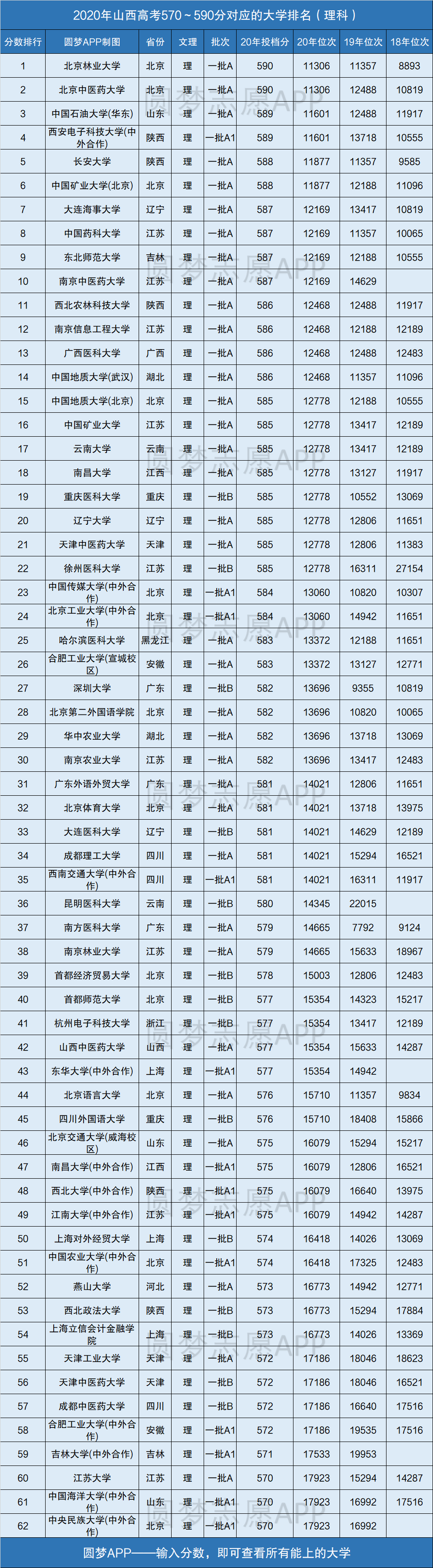 由上图可知,2020年理科580分对应的能上的学校中,仅包含山西省的1所大学,山西中医药大学。高考后不愿出省的同学,也可以重点考虑的这所学校。