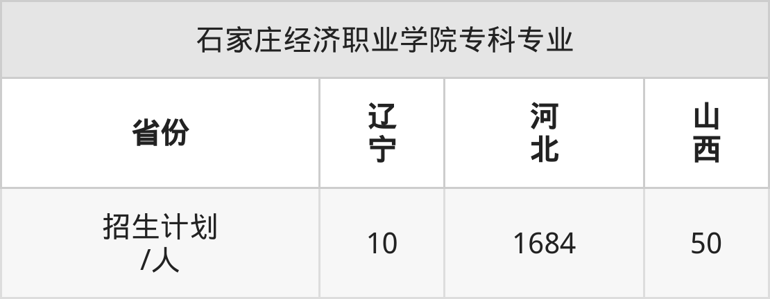 石家庄经济职业学院面向河北(1684人)、山西(50人)、辽宁(10人)开展专科招生。招生批次为专科批。