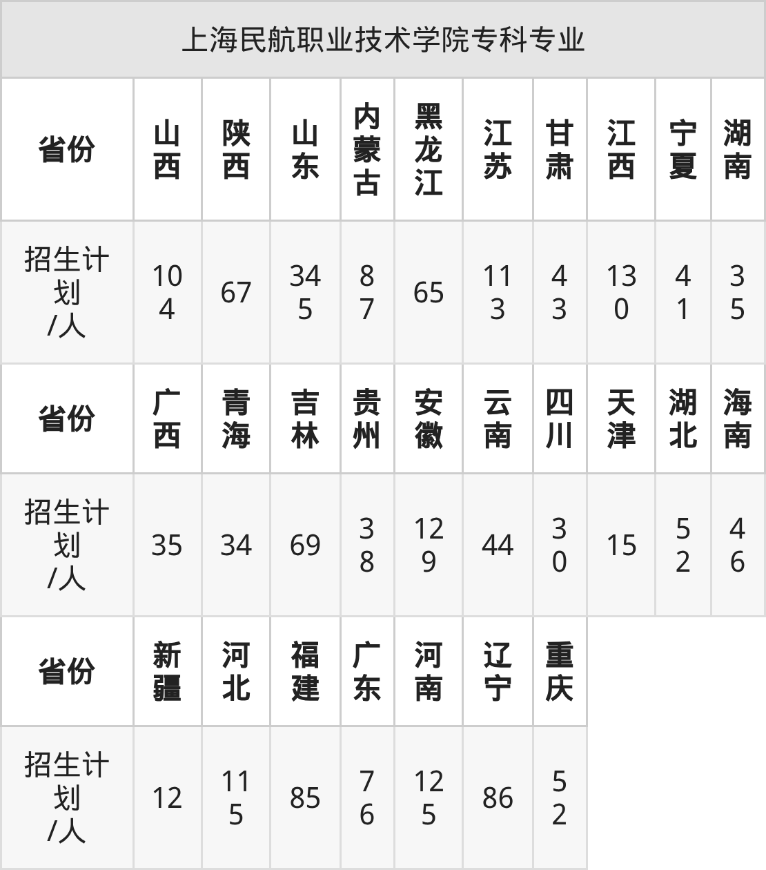 篇幅有限,大家可直接在下表查询本科、专科招生省份及招生计划数: