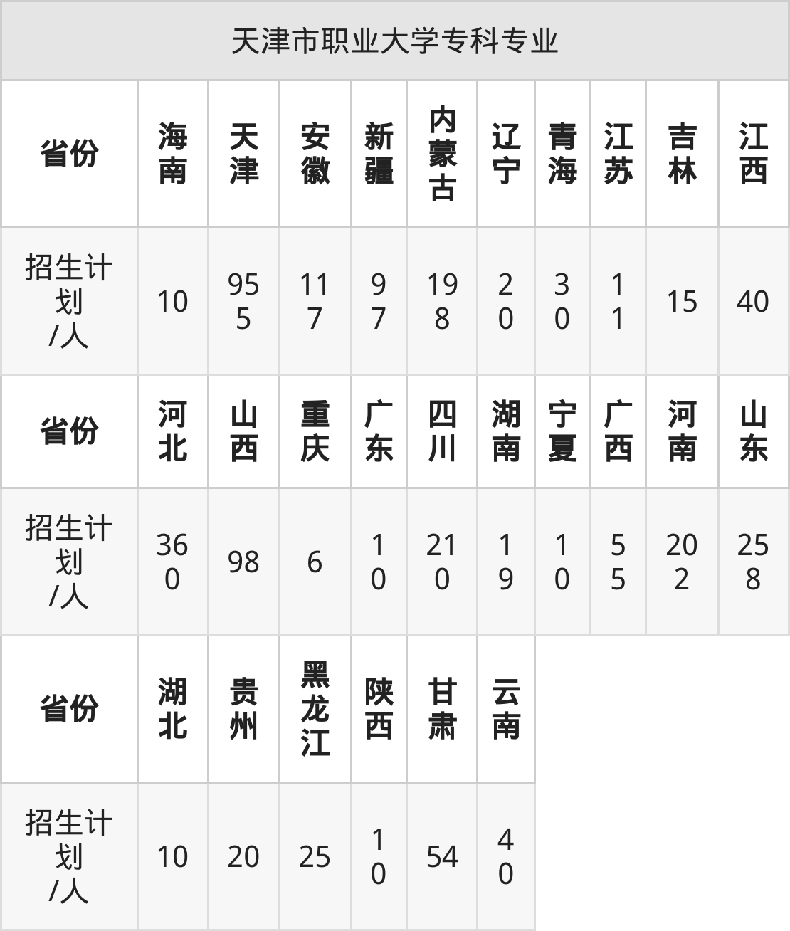 篇幅有限,大家可直接在下表查询本科、专科招生省份及招生计划数: