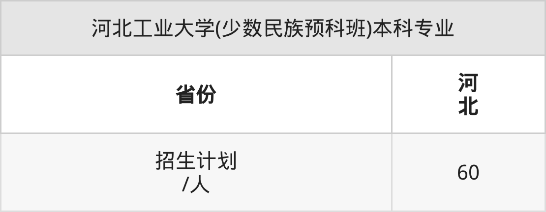 河北工业大学(少数民族预科班)面向河北(60人)开展本科招生。招生批次为本科批。
