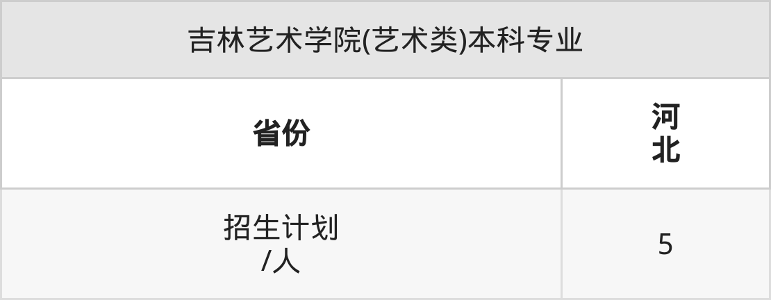 吉林艺术学院(艺术类)面向河北(5人)开展本科招生。招生批次为本科批。