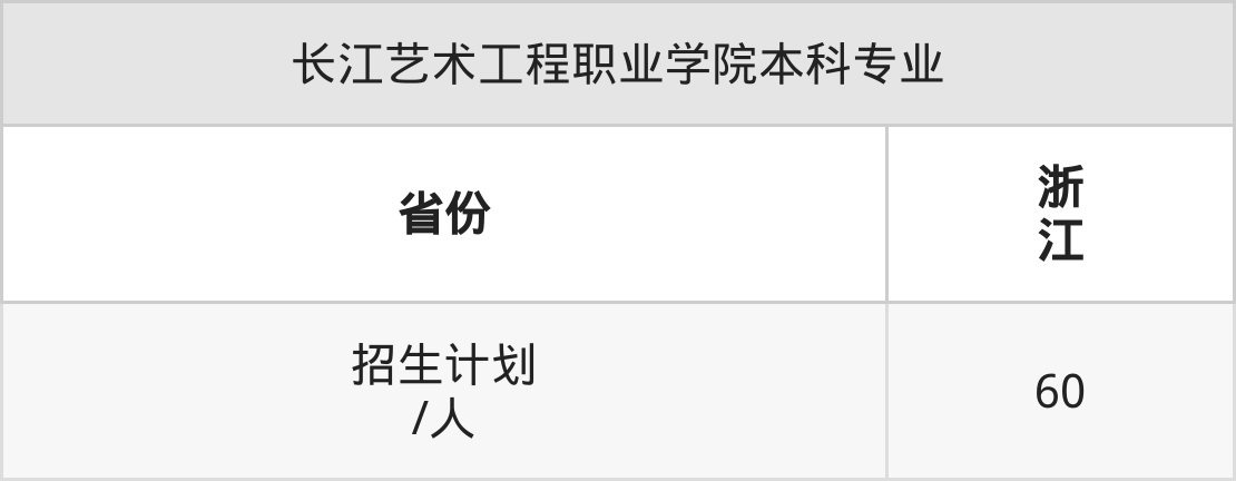 长江艺术工程职业学院面向浙江(60人)开展本科招生。