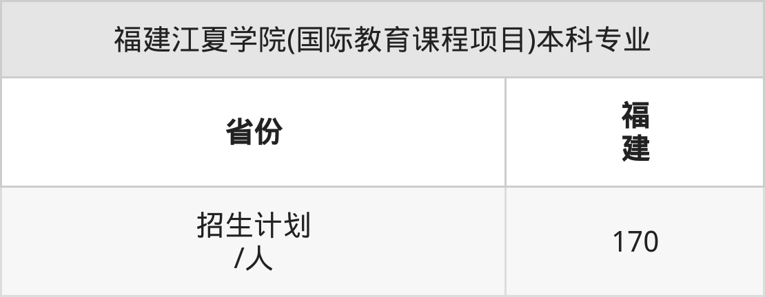 福建江夏学院(国际教育课程项目)面向福建(170人)开展本科招生。招生批次为本科批。