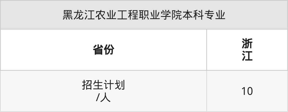 黑龙江农业工程职业学院面向浙江(10人)开展本科招生。