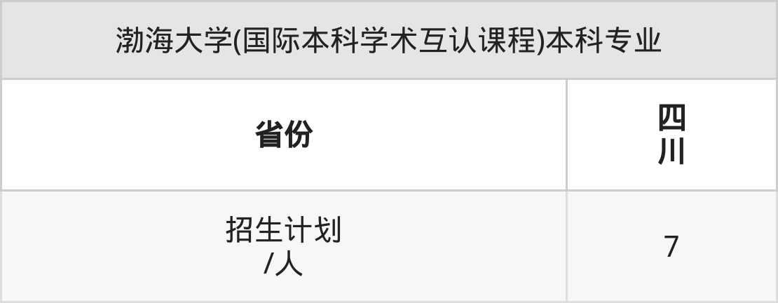 渤海大学(国际本科学术互认课程)面向四川(7人)开展本科招生。招生批次为本科二批。