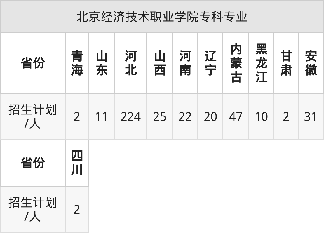 北京经济技术职业学院面向浙江(10人)开展本科招生。