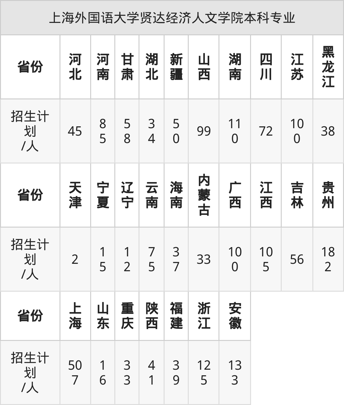 本文将详细介绍上海外国语大学贤达经济人文学院最新招生计划、招生省份以及选科要求等信息。