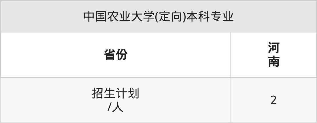 中国农业大学(定向)面向河南(2人)开展本科招生。招生批次为本科一批。
