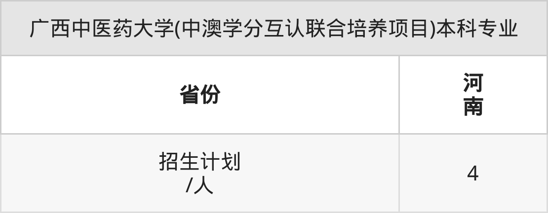 广西中医药大学(中澳学分互认联合培养项目)面向河南(4人)开展本科招生。招生批次为本科二批。