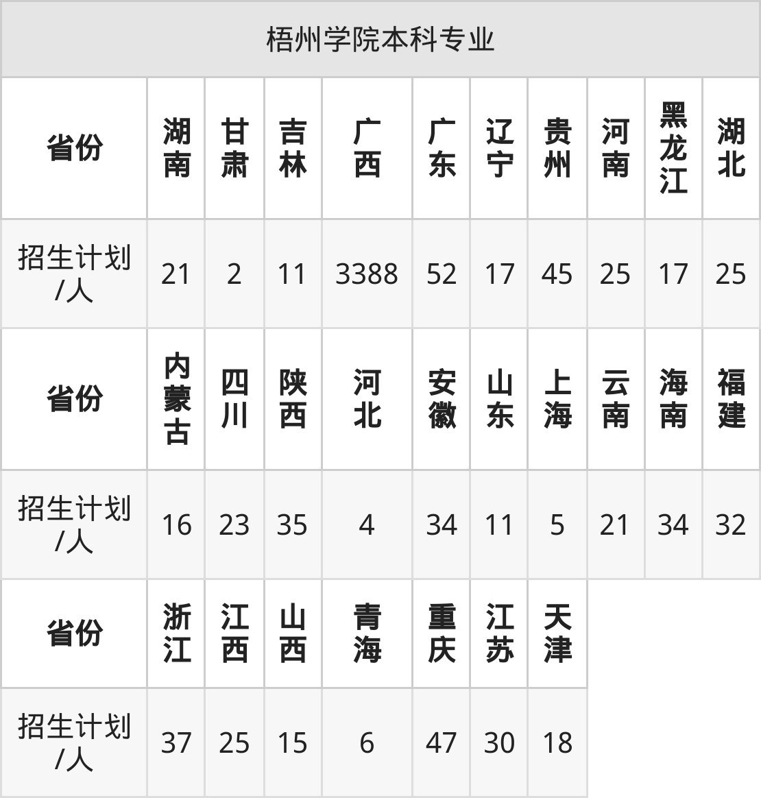 篇幅有限,大家可直接在下表查询本科招生省份及招生计划数: