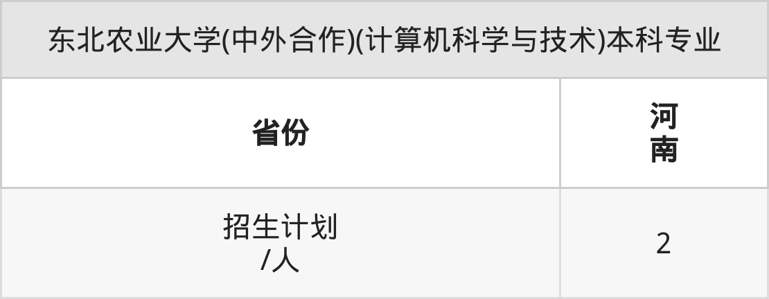 东北农业大学(中外合作)(计算机科学与技术)面向河南(2人)开展本科招生。招生批次为本科一批。
