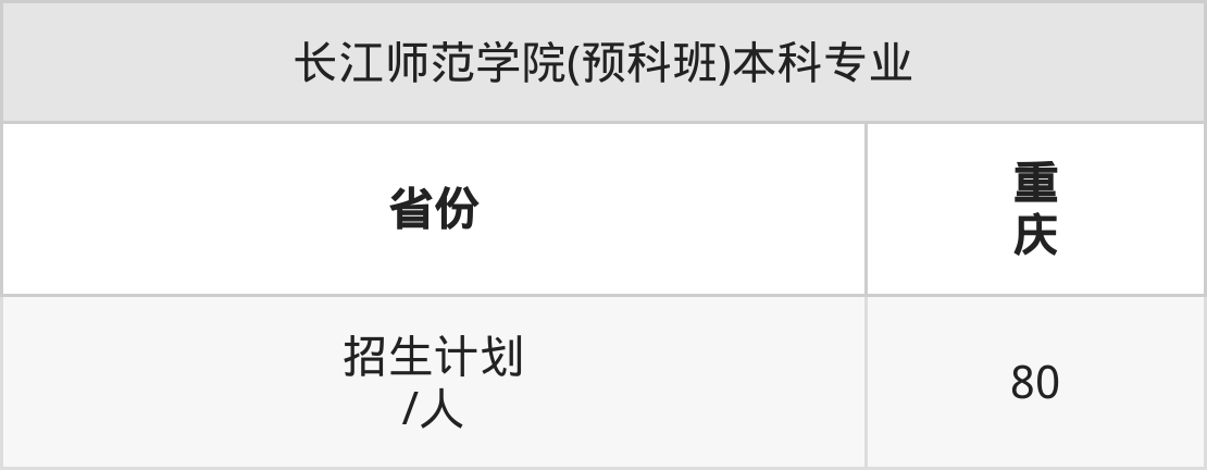 长江师范学院(预科班)面向重庆(80人)开展本科招生。招生批次为本科批。