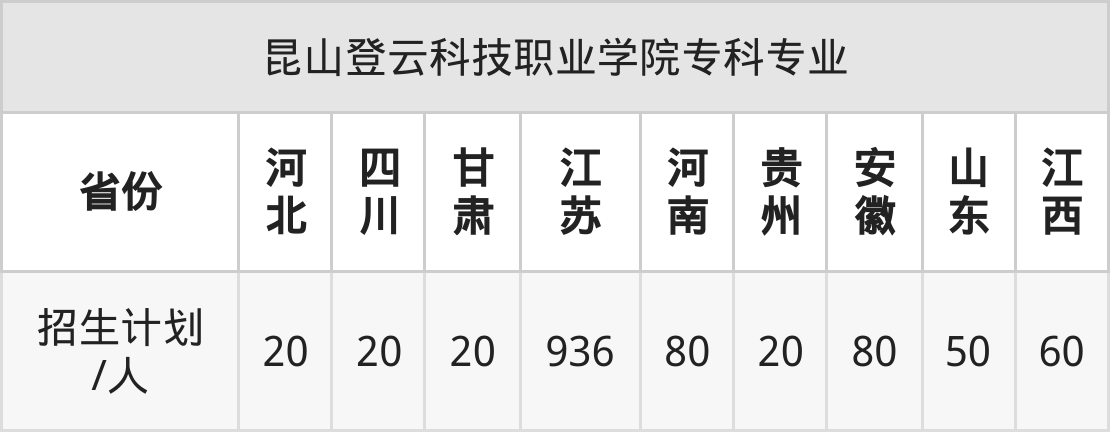昆山登云科技职业学院面向浙江(170人)开展本科招生。
