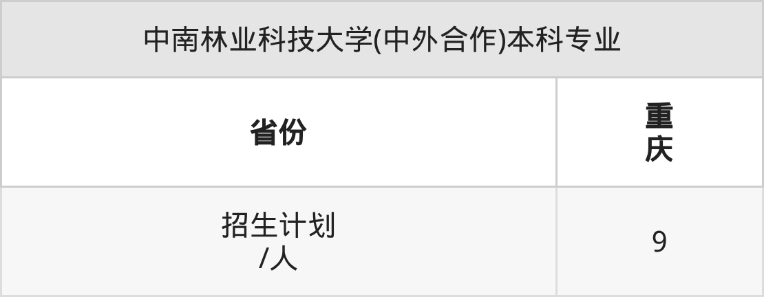中南林业科技大学(中外合作)面向重庆(9人)开展本科招生。招生批次为本科批。