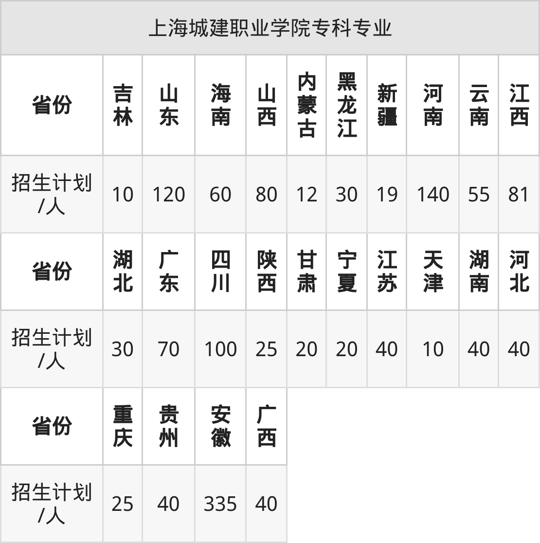 篇幅有限,大家可直接在下表查询本科、专科招生省份及招生计划数: