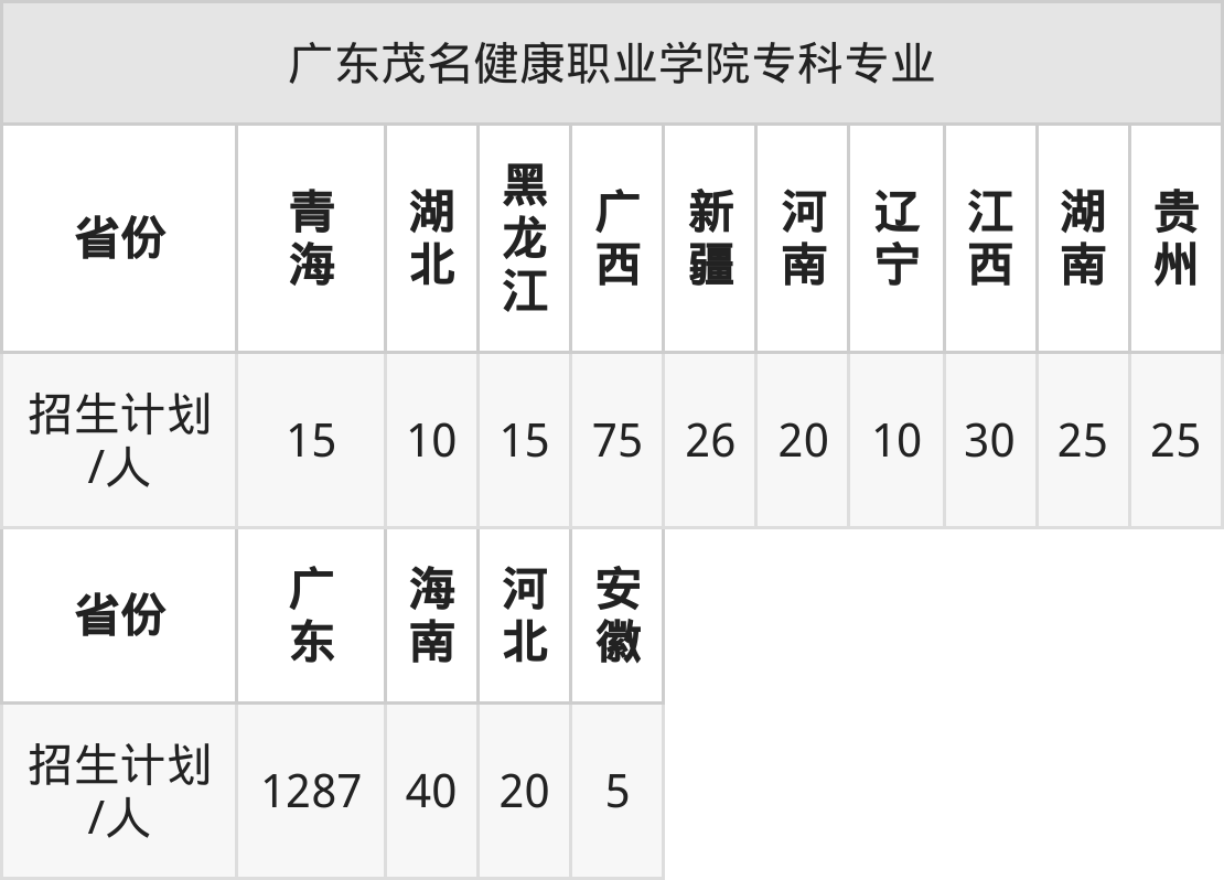 本文将详细介绍广东茂名健康职业学院最新招生计划、招生省份以及选科要求等信息。