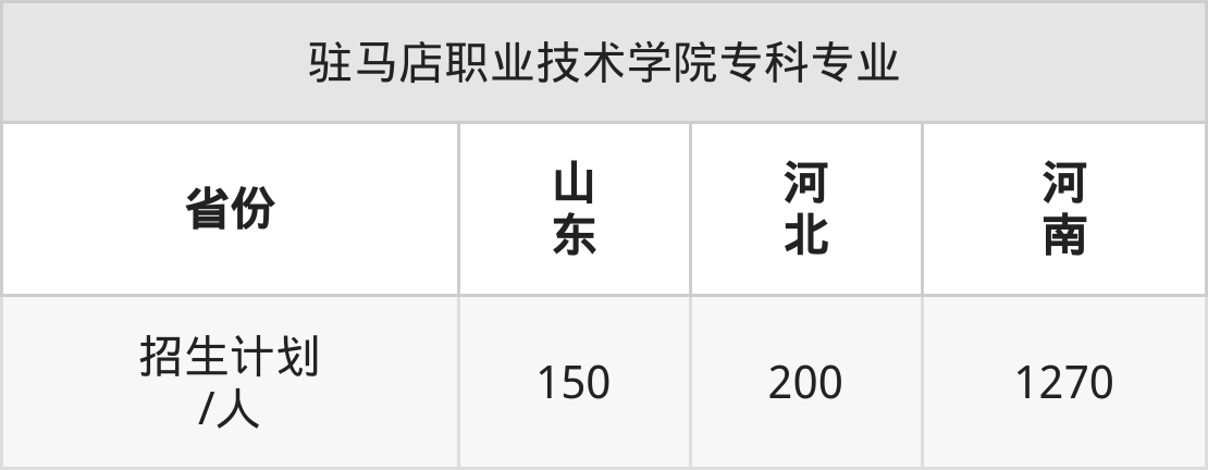 驻马店职业技术学院面向河北(200人)、河南(1270人)、山东(150人)开展专科招生。其中山东招生批次为二段,其余省份为专科批。
