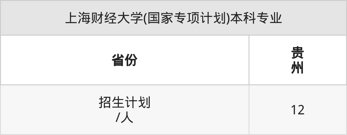 上海财经大学(国家专项计划)面向贵州(12人)开展本科招生。招生批次为本科批。