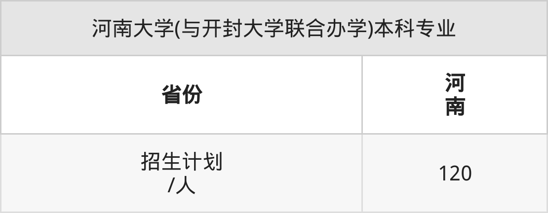 河南大学(与开封大学联合办学)面向河南(120人)开展本科招生。招生批次为本科一批。