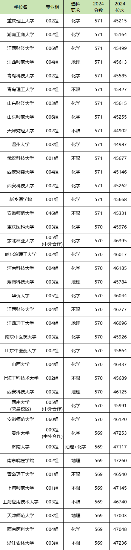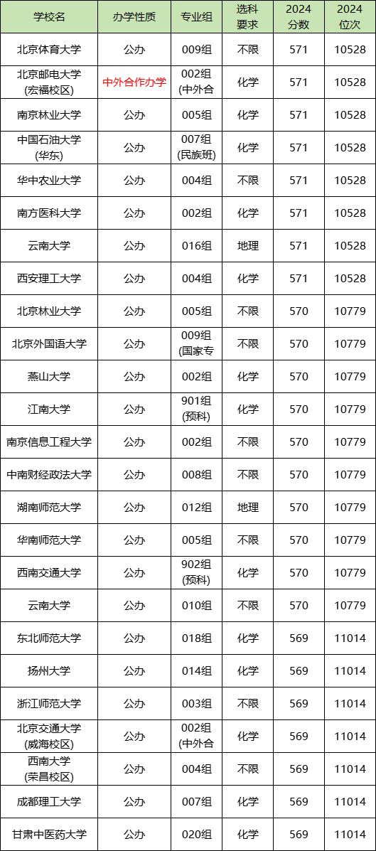 另外省外比较好的还有东北林业大学(005组中外合作)570分、西南大学(005组中外合作)570分、贵州大学(009组中外合作)569分。