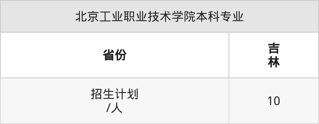 北京工业职业技术学院面向吉林(10人)开展本科招生。招生批次为本科提前批A。