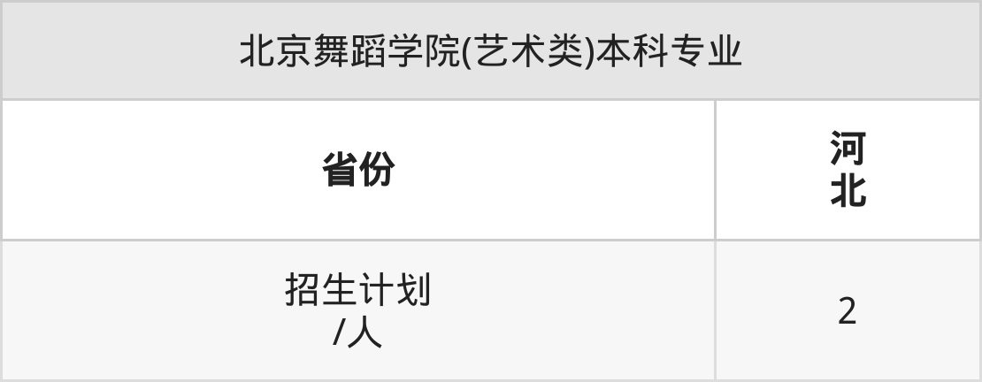 北京舞蹈学院(艺术类)面向河北(2人)开展本科招生。招生批次为本科批。