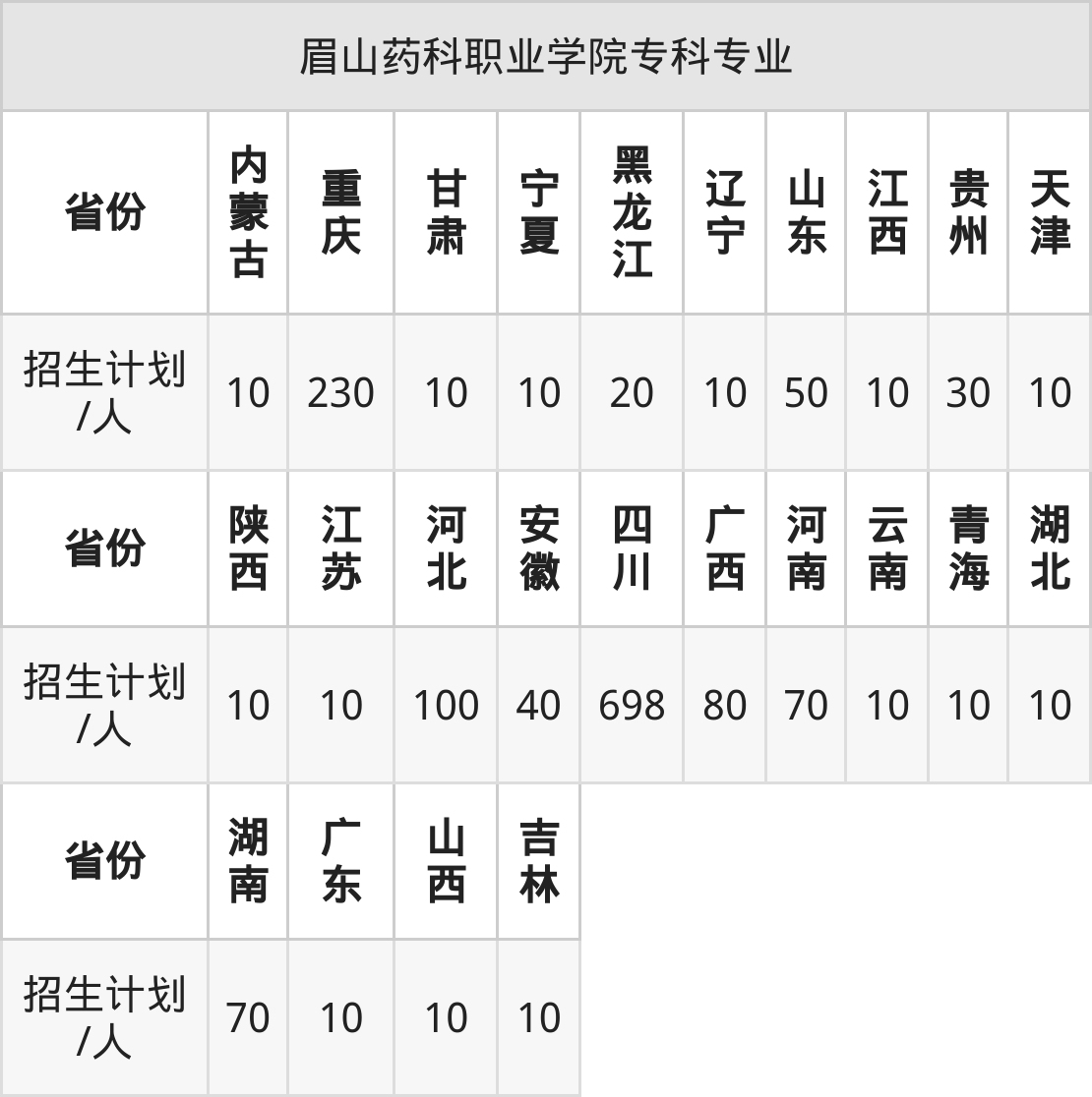 篇幅有限,大家可直接在下表查询专科招生省份及招生计划数: