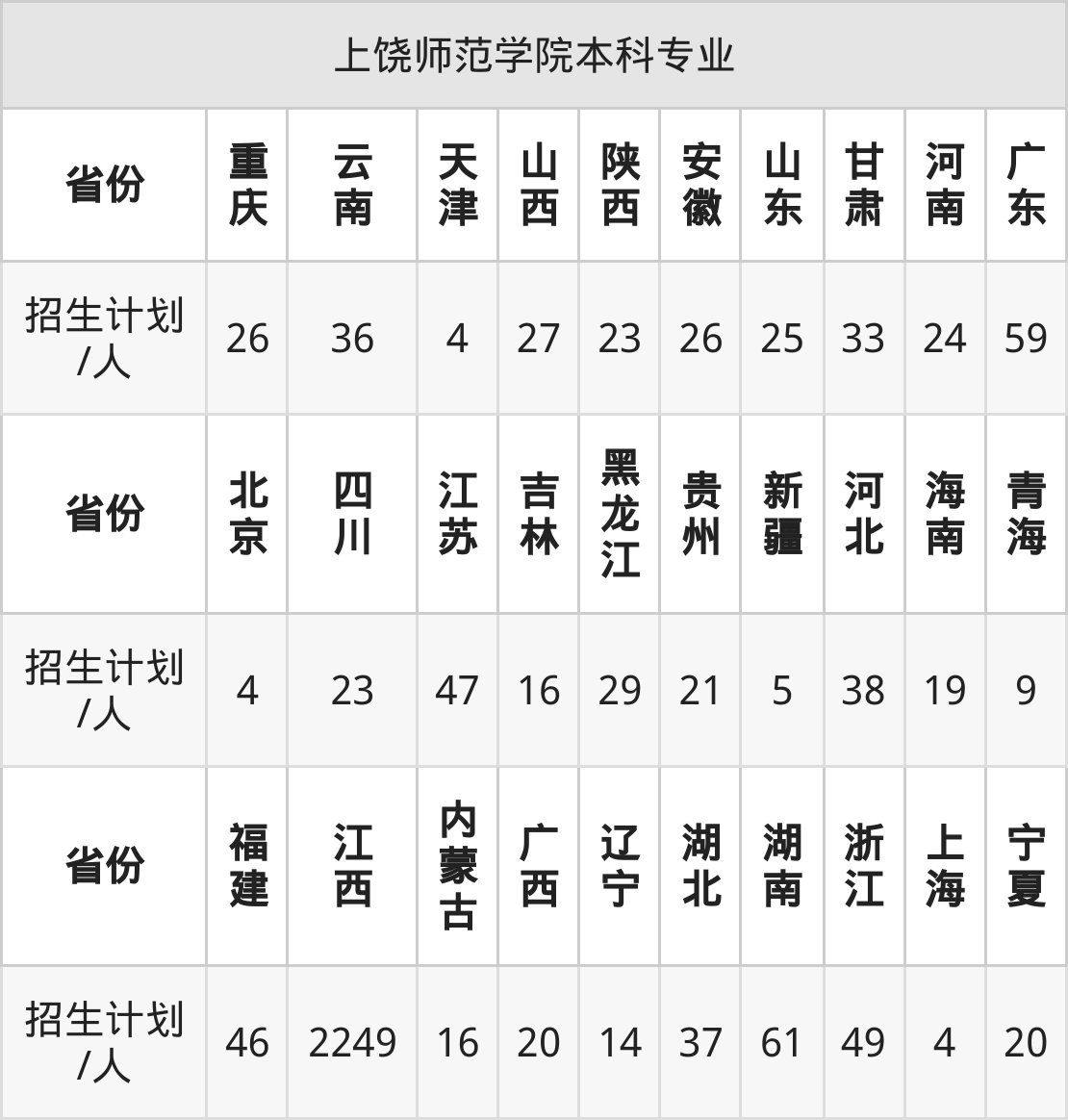 | 上饶师范学院本科招生专业 | |