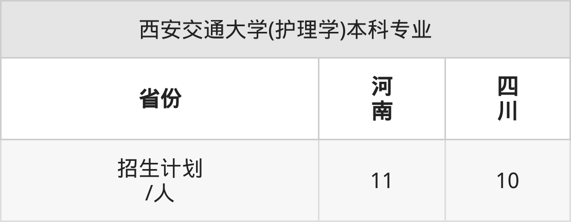 西安交通大学(护理学)面向四川(10人)、河南(11人)开展本科招生。招生批次为本科一批。