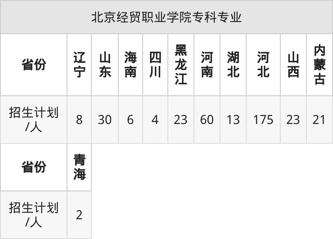 北京经贸职业学院面向浙江(45人)开展本科招生。