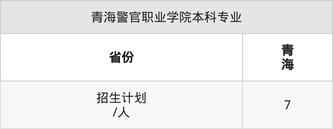 青海警官职业学院面向青海(7人)开展本科招生。招生批次为本科二段。
